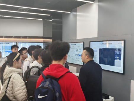 在张江机器人谷,齐鹏老师带领同学们参观了产业展示中心,详细了解了机器人谷从产业布局、创新生态到重点企业发展的整体情况。讲解人员系统介绍了机器人谷正以“智能制造产业高地”为定位,依托前沿技术导入、龙头企业带动与多层级创新配套,形成一条涵盖机器人研发、零部件制造、测试验证、商业化应用的完整生态链。齐鹏老师表示,张江机器人谷为未来智能制造人才提供了广阔的舞台,让学生在真实产业环境中感受创新动力,对于培养跨专业融合型人才具有重要意义。