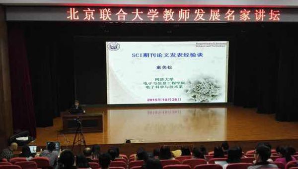 电子科学与技术系主任童美松教授在北京联合大学举办的“教师发展名家讲坛”上作了一场关于如何发表高质量SCI论文的学术讲座。讲座中童美松教授详细阐述了什么是SCI论文、为什么要发表SCI论文以及如何发表高质量SCI论文等广大教师非常关心的问题,强调高质量SCI论文来自于高质量科研活动产生的高质量科研成果,并通过大量例子就如何开展高质量科研活动和撰写高水平SCI论文分享了自己的经验和体会。