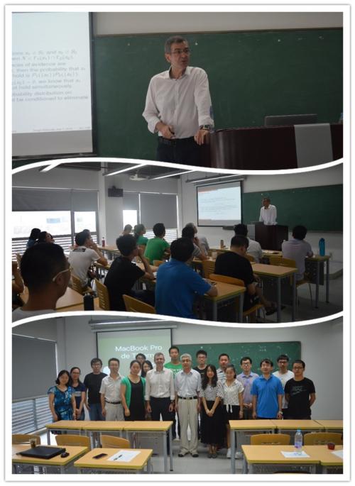 报告中,Thierry Denoeux教授首先介绍了D-S证据理论、信念函数模型和不确定性推理的基本知识。随后在分类问题中,基于距离函数将信念函数用于寻找KNN规则的最近邻样本、构建神经网络分类器的模型。在无监督学习,聚类分析中,对硬聚类、模糊聚类、概率聚类和粗糙聚类等扩展,提出了credal划分,用信念函数度量划分中样本的隶属不确定性,提出了多种解决模型。Thierry Denoeux教授生动详实的报告,引起了与会者的强烈兴趣,现场气氛热烈。