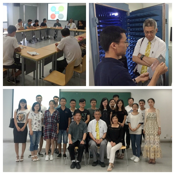 童美松教授热情接待了Chew教授夫妇并就教学与科研的合作进行了深度交流。随后,童教授改变以往请嘉宾作学术报告的传统形式,而以座谈会的方式请Chew教授夫妇在电信楼309室与学生面对面进行英文交流,并就学生关心的问题,比如:如何做高质量的科研、如何追踪国际前沿课题、如何阅读和撰写论文、教授招学生时看重学生的什么素质等进行深度讨论和互动,现场气氛轻松愉快,每位同学都积极主动地向Chew教授提出了自己在学习和科研过程中遇到的困惑,Chew教授一一做了耐心的指导和解答。他还用一棵树来比喻科学技术的发展过程和知识体系结构,讲解基础研究与应用研究的关系,强调基础研究的重要性,鼓励同学们要打好数学物理基础以便将来从事高端的前沿科学研究工作。座谈会后,同学们普遍感到Chew教授学识渊博、为人随和风趣、思想理念先进,自己受益匪浅。随后,Chew教授夫妇在童教授的陪同下参观了电子科学与技术系的电磁场与微波技术实验室和集成电路设计实验室,对童教授团队取得的科研成果表示高度的赞赏并期望有机会进行国际交流与合作。