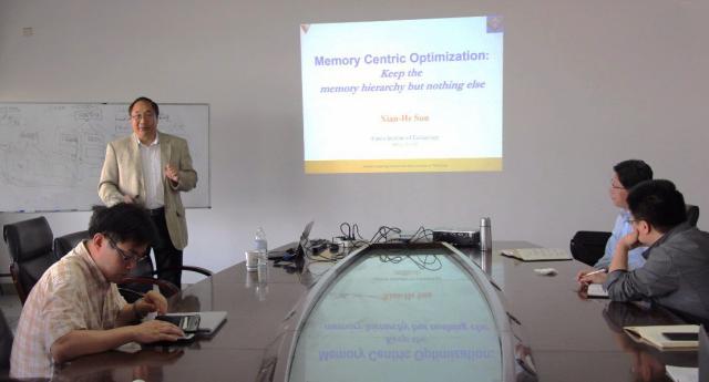 ,并在527会议室作了题为“Memory Centric Optimization: Keep the memory hierarchy but nothing else”的学术报告。