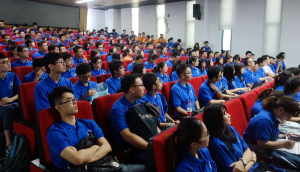 教授吴江枫作了题为“面向未来智能与信息系统的新一代芯片技术”的学术报告。吴教授的报告从人工智能、物联网、5G通信三方面,探讨了芯片技术发挥的重要作用,面临的技术挑战和未来的研究方向。精彩的报告让报告厅数次掌声雷动,同学们被吴江枫教授的学者风范深深折服。