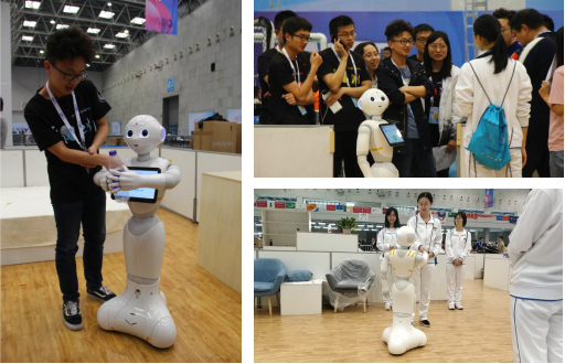 图5:家庭服务机器人比赛精彩瞬间:物体抓取、语音识别、与人握手