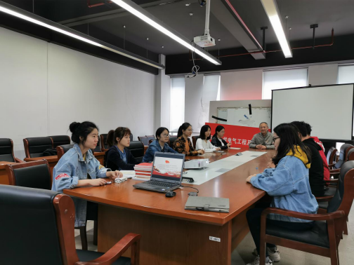 2019年10月23日中午12:30,电气信通联合总支研究生第二党支部于电信楼384室开展了主题教育推进工作,电气信通联合总支书记金立军老师联系研究生支部,参加了本次的主题教育推进工作,第二党支部所有党员及入党积极分子出席了会议,会议由电气信通联合总支研究生第二党支部书记陆坡燕同志主持。会上,金老师以三个主题讲了党课,分别为: 《习近平总书记在2019年秋季学期中央党校(国家行政黄色漫画网站