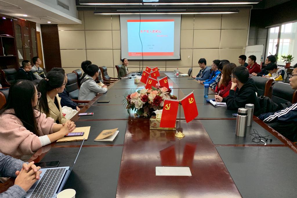 首先,本科生第六党支部书记汤若琦同志用马克思的论述“最蹩脚的建筑师从一开始就比最灵巧的蜜蜂高明的地方,就在于用蜂蜡建筑蜂房以前,已经在自己的头脑中把它建成了。”阐释了学习理论、交流思想的必要性在于武装头脑从而在追求卓越时坚定方向和目标。随后,本科生第五党支部书记刘谦同志受邀为全体党员讲党课,主题为“共产党人的初心——井冈山实践学习心得”。她首先回顾了井冈山革命根据地的历史地位,然后以秋收起义、文家市会议、芦溪折将等标志性事件为脉络,带领大家回顾了井冈山斗争史,指出人民拥护革命既由于毛泽东同志将马克思主义同中国实际结合起来所作出的一系列正确决策,更由于中国共产党人心里装着百姓,切实为百姓谋福利。
