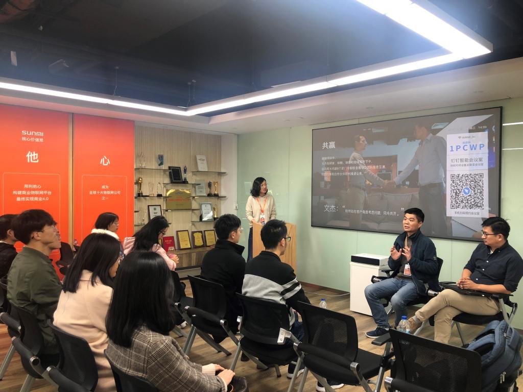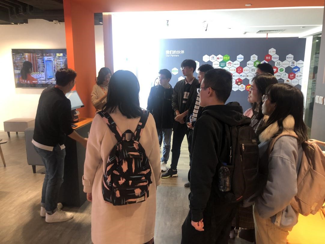 在参观环节,大家分别参观了商米之家和公司样板店以及研发团队的办公环境,参观中,通过工作人员为大家详细演示超市结账、酒店自助入住、支付宝刷脸支付、电子货签等产品的服务设计和技术原理,使同学们体验了物联网时代新零售的前沿科技。样板店则通过商米公司的设备及软件设计,为大家生动地展示了零售业商业场景的数字化、互联化和智能化的发展前景。(张砚秋)