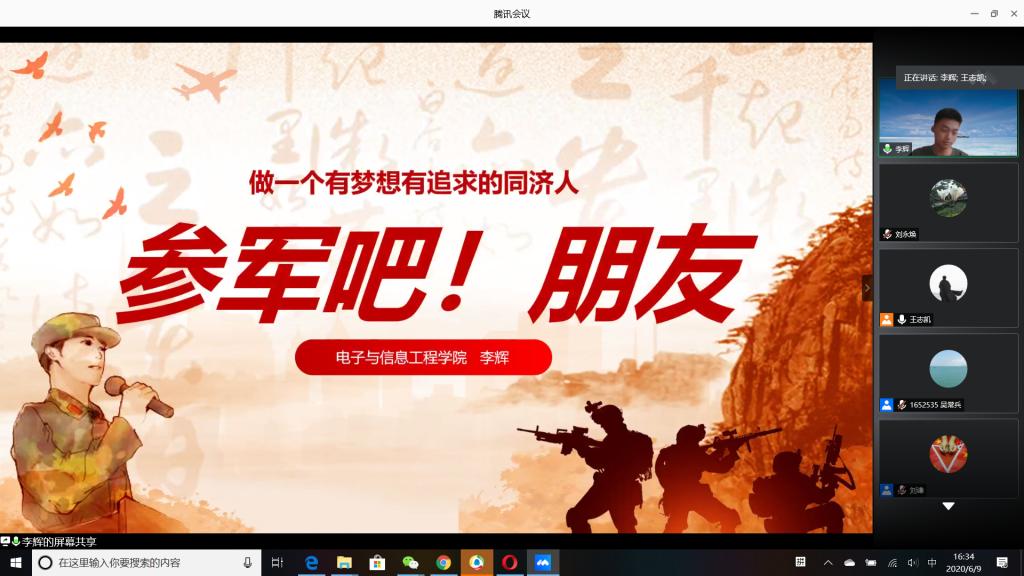 退伍大学生李辉从国防的意义、参军条件入手,结合自己两栖步兵多姿多彩的军旅生活,号召同学们携笔从戎,做一个有梦想有追求的同济学子。