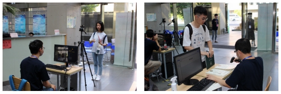 新生首先来到人脸识别区域,通过“人脸识别系统”,高效进行学籍注册,非常便利地完成报到第一步,亲身体验了“科技改变生活”。