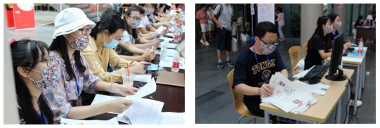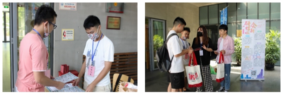 领导及迎新工作人员早早地在智信馆一楼大厅集合。招生现场设有人脸识别注册、身份验证、新生礼包发放、录取通知书收取、各总支材料收取、研究生会招新等摊位。便捷的流程、热情的笑脸、暖心的服务,新生所到之处都能真切感受到黄色漫画网站